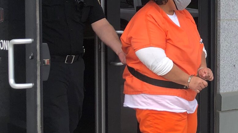 Lucy Pizarro is led from the Susquehanna County Courthouse on Wednesday, April 28, after being sentenced to 15-35 years for the July 2020 shooting death of her boyfriend Terence Whitmire at their Oakland Twp. residence. STAFF PHOTO/STACI WILSON