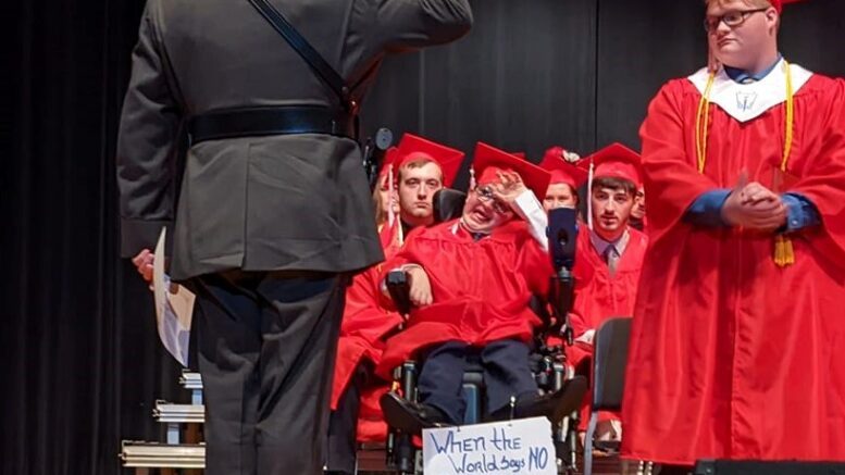 In his remarks, Button said that despite the challenges of the past few years, the graduating class had developed into leaders in academics, athletics and the arts. He also highlighted Josh Bourassa, who has Krabbe’s Disease and defied the odds of the genetic disorder to appear with his fellow graduates on the stage Saturday.