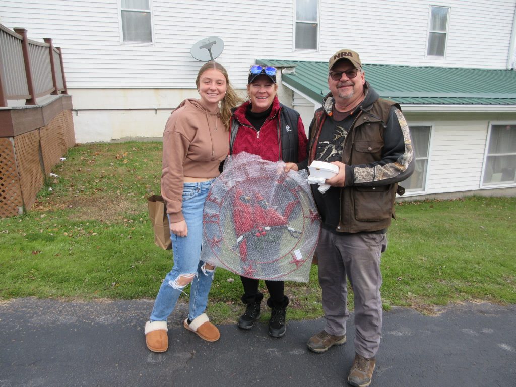 Left to right: Aspen, Debbie, and Todd Smith leave the Montrose VFW craft fair with their purchases on Sunday. Louis Gauthier Photo