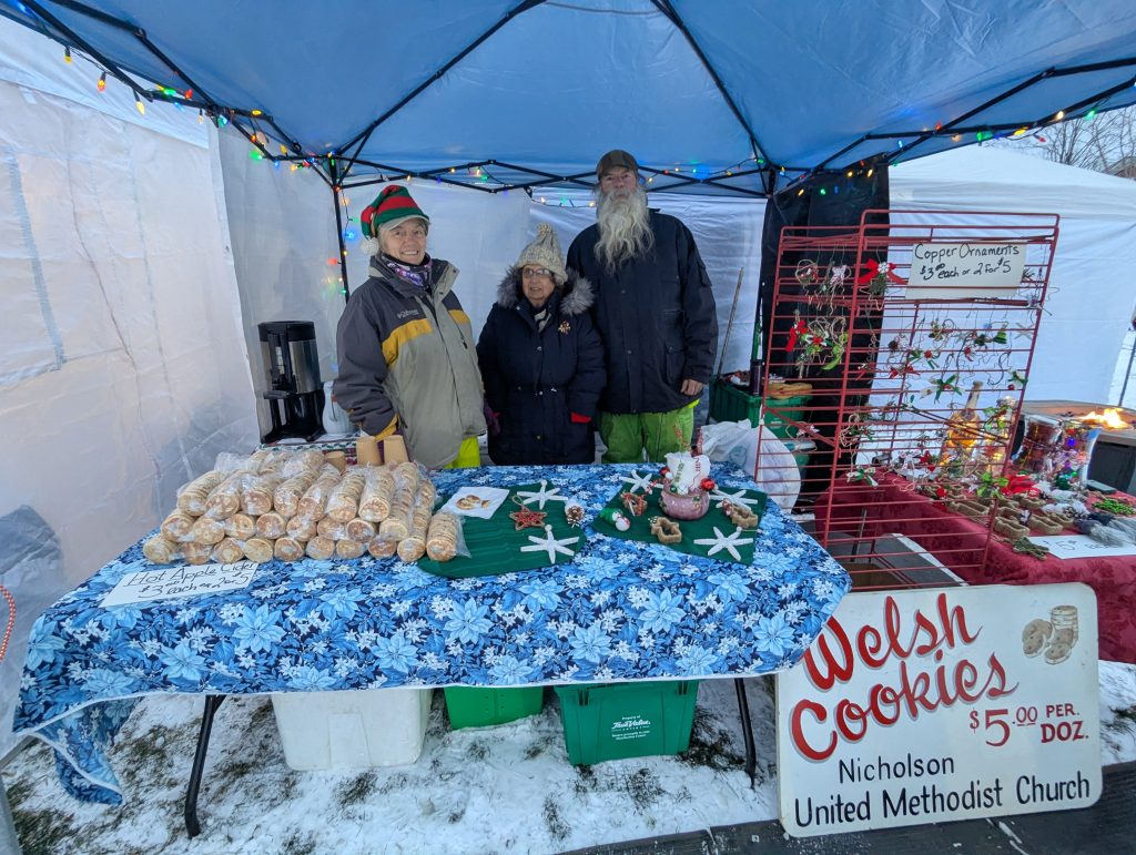 Allyson Halleran, Evelyn Conover and Bruce Halleran with their dozens of Welsh cookies and hot cider for sale on Friday for Christmas in Montrose. Lauren Royce Photo