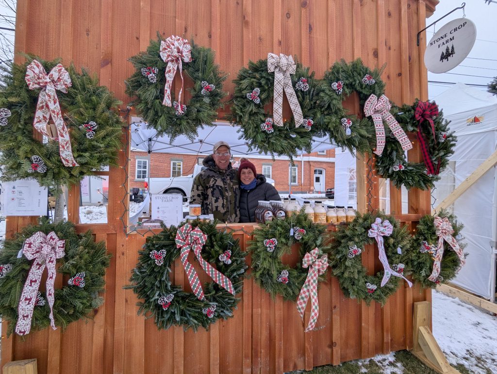 Tom and Emily Perkins of Stone Crop Tree Farm sell maple products, handmade wreaths and trees during the opening night of Christmas in Montrose on Friday. Lauren Royce Photo