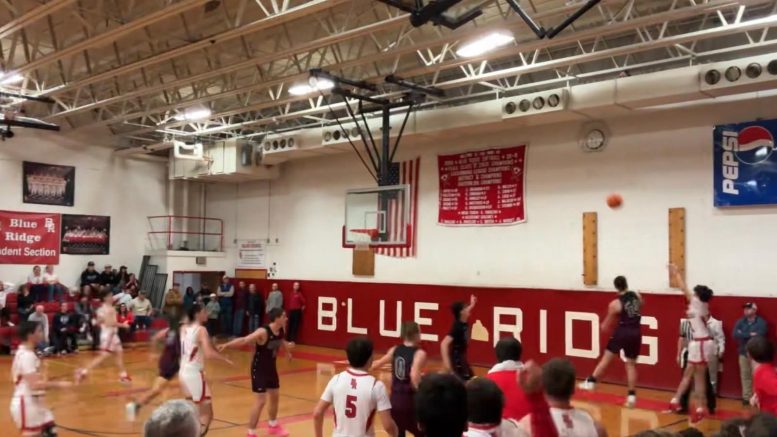 With no timeouts for Coach Wes Parks, point guard Travis Rutter pushed the ball up the sideline after the outlet pass and hit Parks in the right corner. Blue Ridge built the lead after jumping out to a 19-7 lead in the first quarter thanks to 13 points from Paxton Pingarelli.