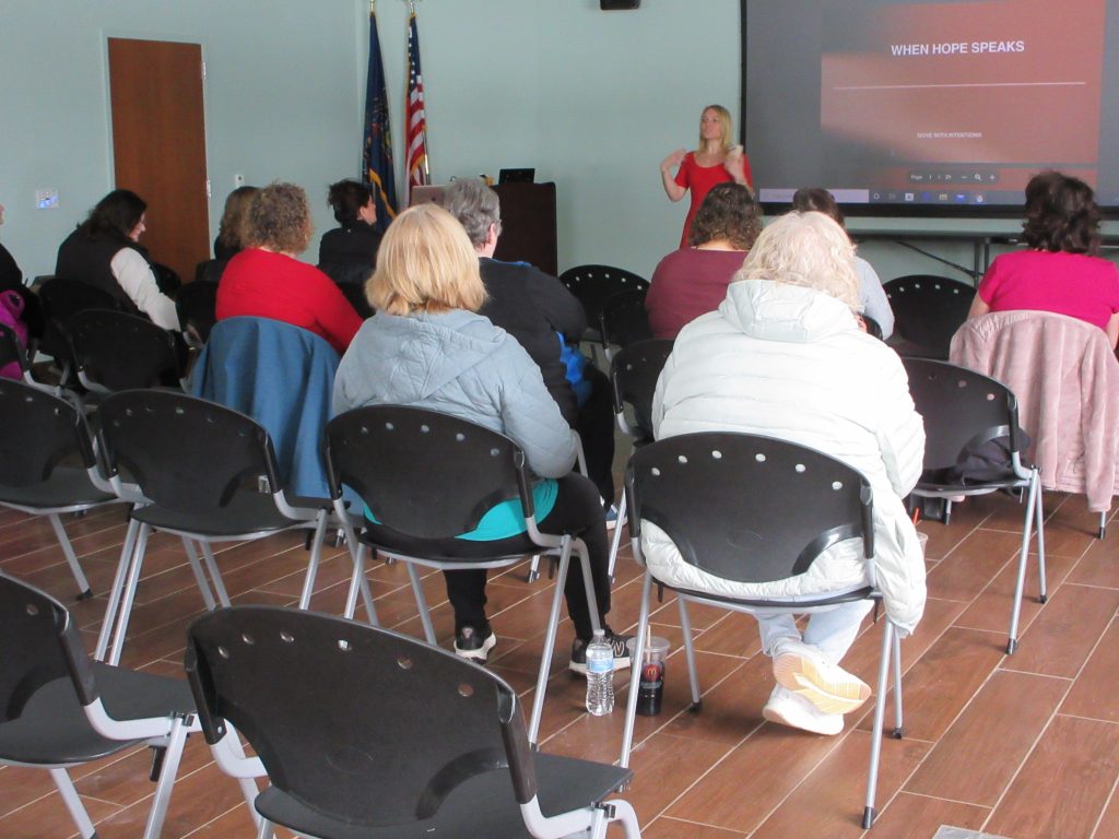 MONTROSE — Like the splintered sunlight that pierced the gray February sky, Lacey Cook and her partner Iván Quintero brought a ray of hope to the Susquehanna County Library on Feb 14. Quintero and Cook, owners of the recently launched wellness business Move With Intention, were there to celebrate the publication of Cook’s new book “When Hope Speaks” and lead a workshop that the team described as “an interactive experience designed to help participants reduce stress, build resilience, and learn practical tools for moving through life with more intention.”