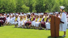 Montrose Area Class of 2019 valedictorian Katie Puterbaugh gives her commencement address during the graduation ceremony held Saturday, June 8, in the high school stadium….